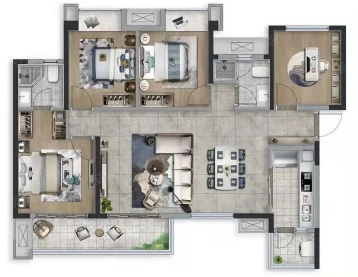 117m2現(xiàn)代四居室